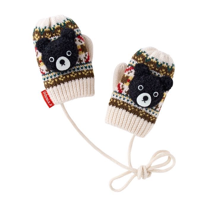 こちらもお揃いでつけれる、立体編みモチーフがかわいいミトンです。