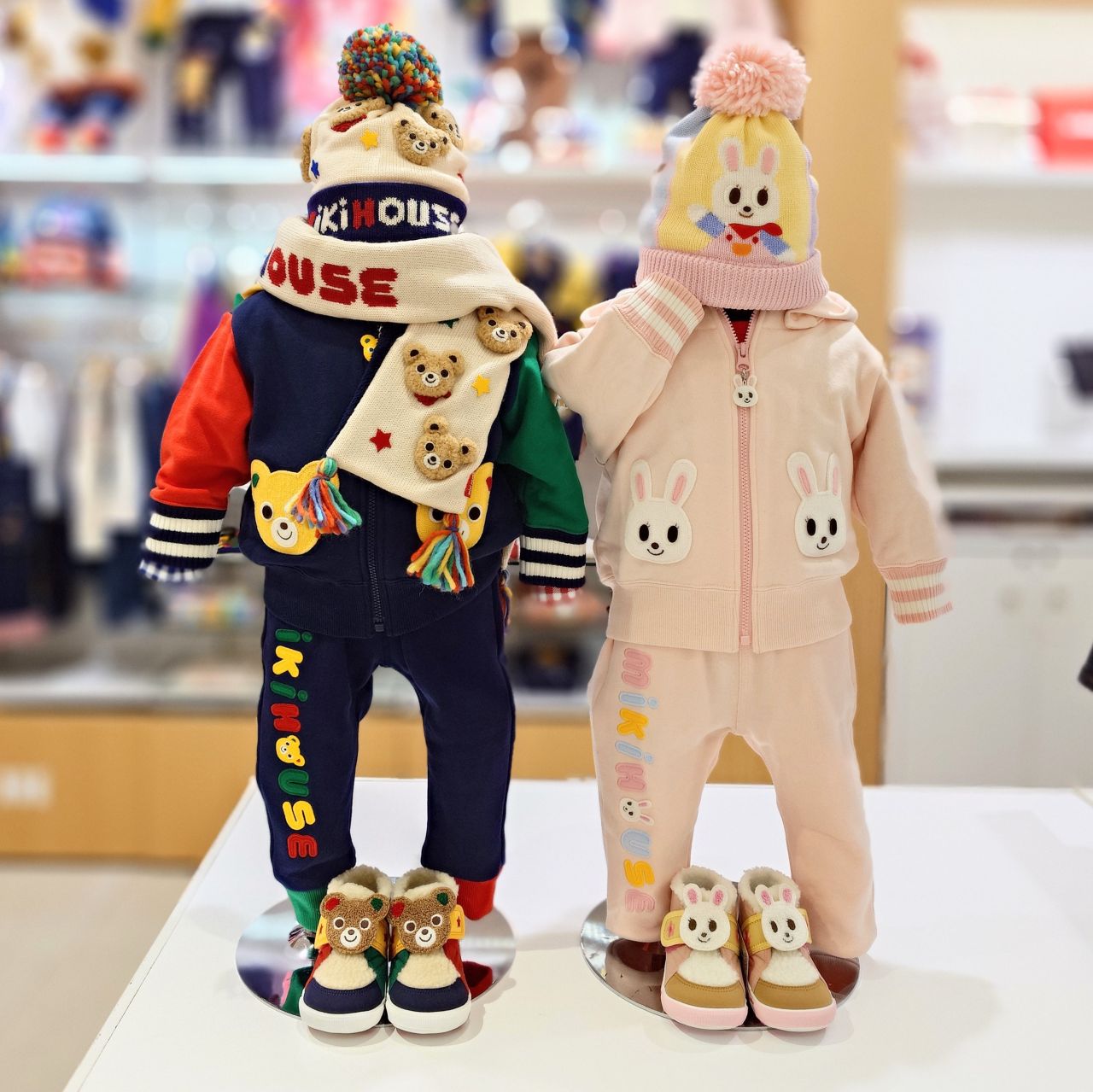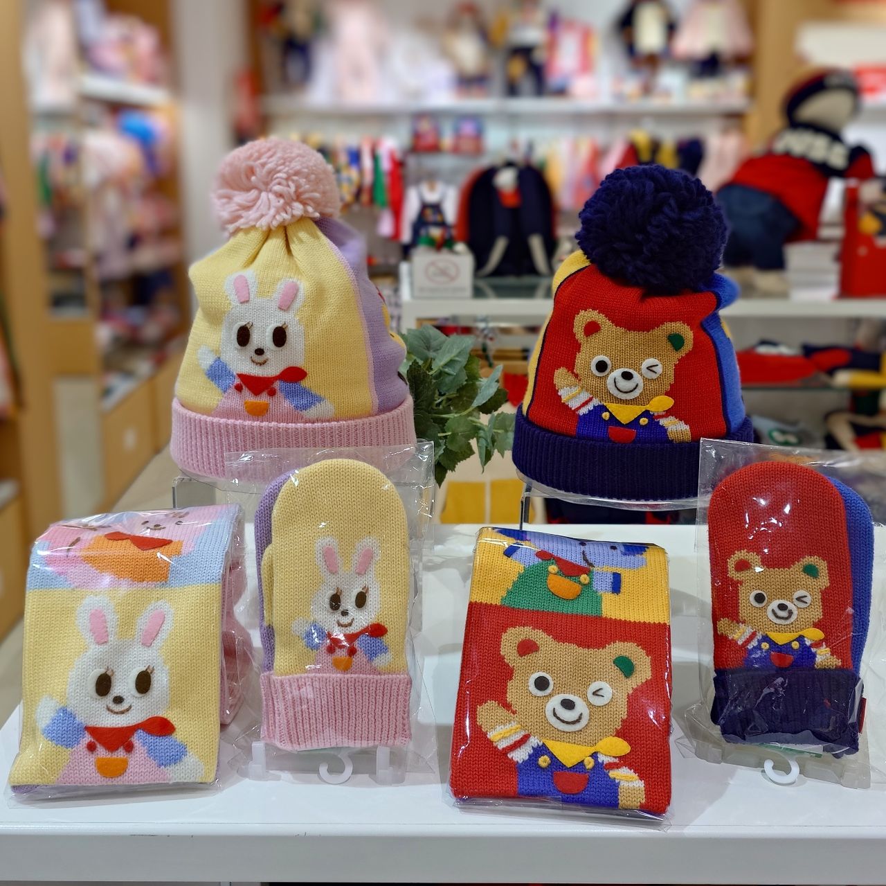 寒い冬もお出かけが楽しくなる、ミキハウスらしいデザインのニット小物をご紹介いたします。