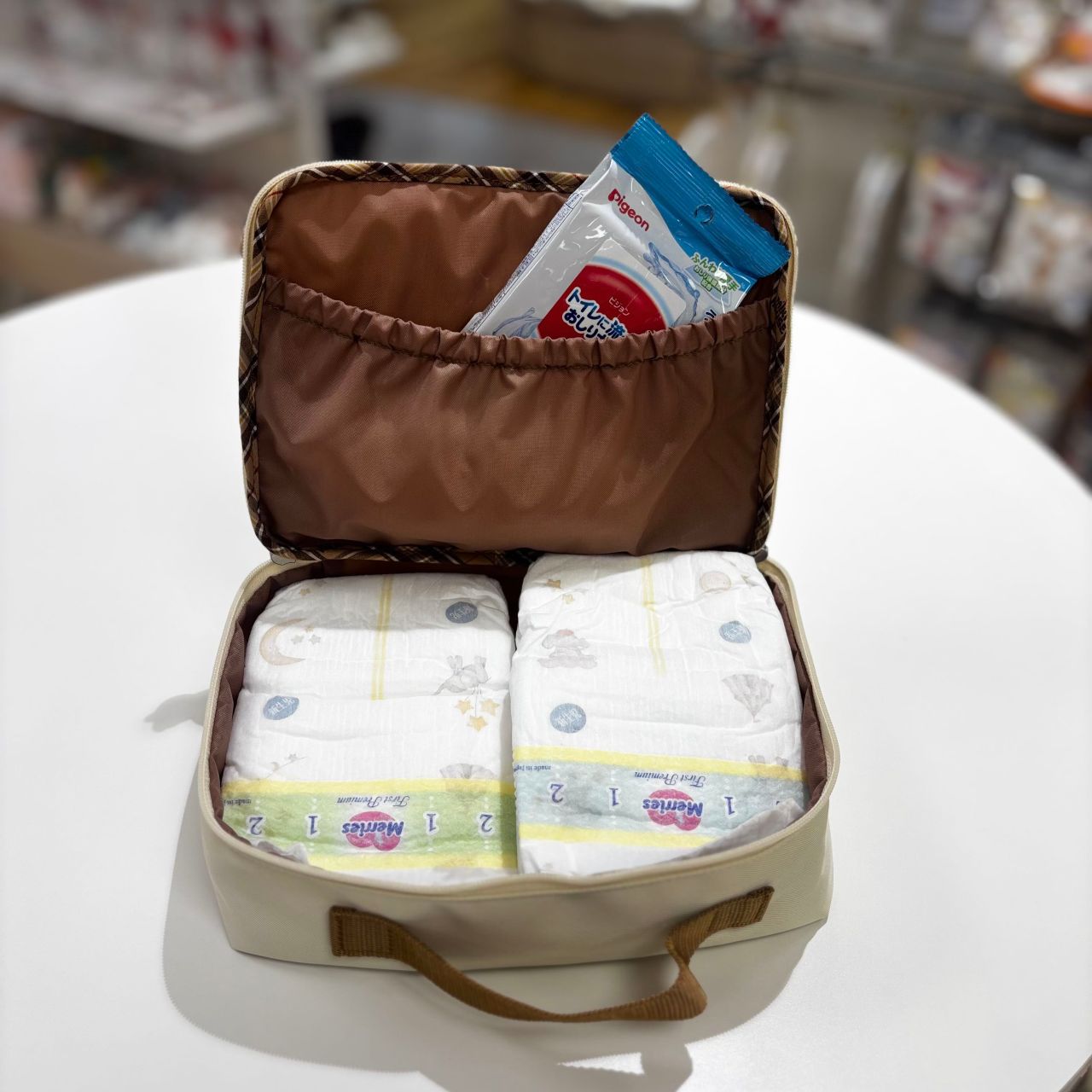 おむつポーチを開けると、チェックのパイピングが目をひきます⭐︎