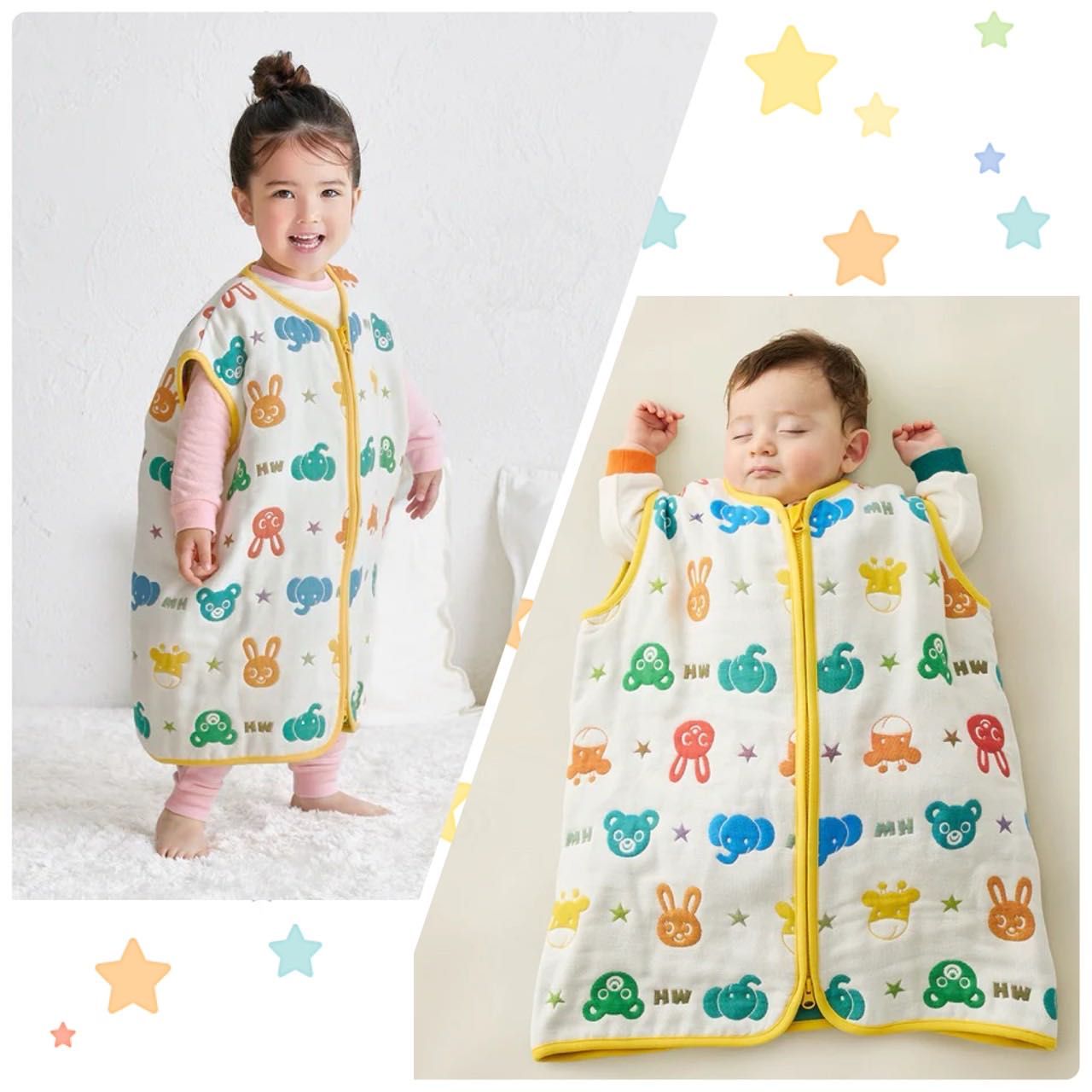どちらも新生児から5歳頃まで使用でき、寝ている間の寝冷えや、おうちでの体温調節として幅広くお使いただけますので、ぜひご参考にしてください♪
