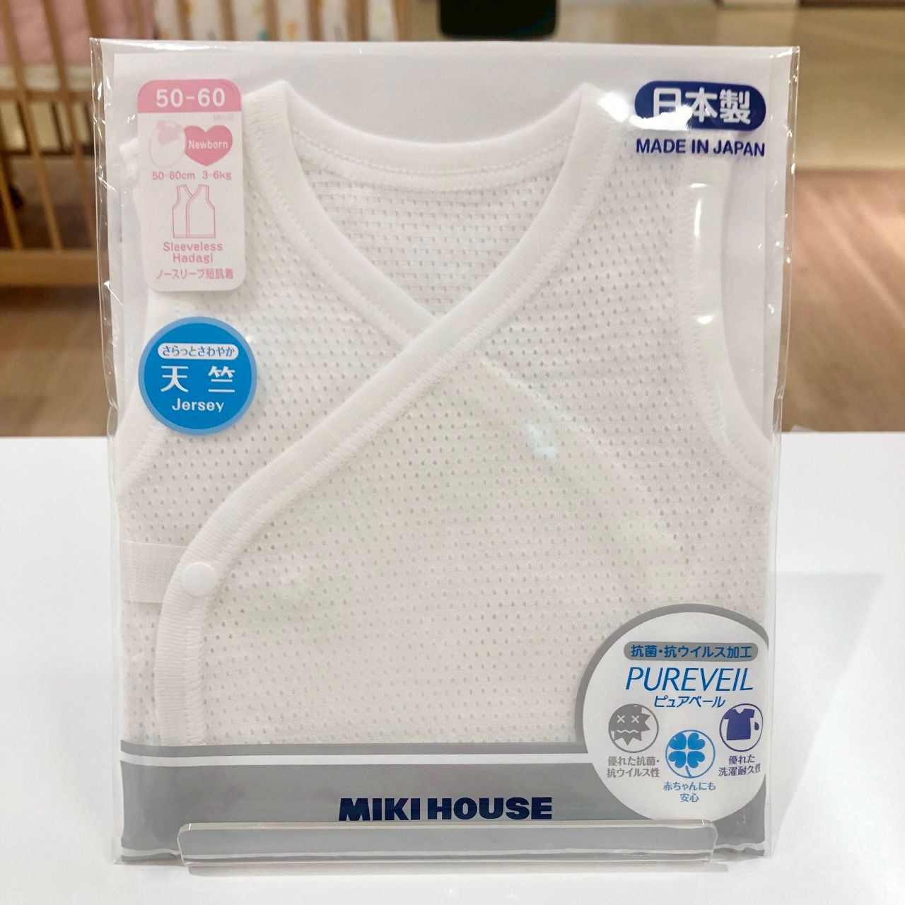 メッシュ天竺素材のノースリーブ短肌着です!