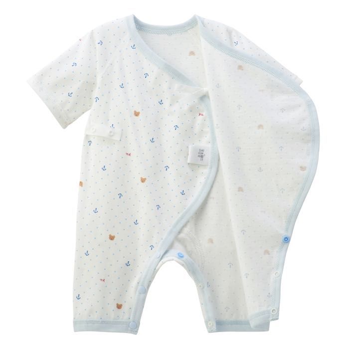 赤ちゃんのM型の足に合わせて、まとわりつかない裾広がりのシルエット、股ホックが付いてますので足の動きが活発になってもはだけません‼️