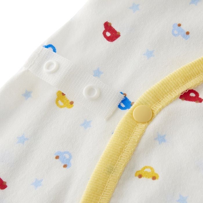 コンビオールは、コンビ肌着をよりお洋服らしく着られるように、足元がパンツのように分かれています。